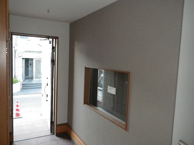 玄関を入るとすぐにビルトインガレージを覗く窓!