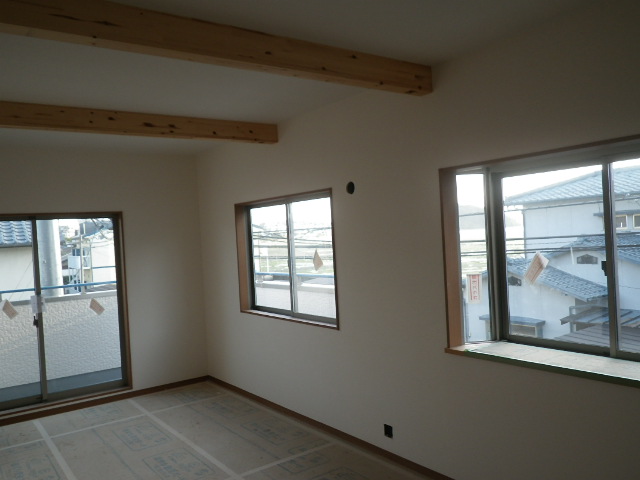白いクロスに自然木の梁をそのまま生かして