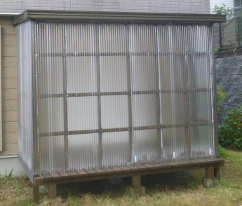 透明な波板を全面に貼ることでサンルームに変身しました。